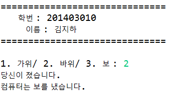 System.out.println("당신이 졌습니다.");