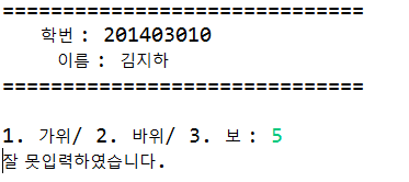 System.out.print("1. 가위/ 2. 바위/ 3. 보 : ");